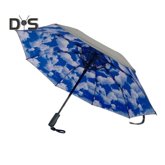 Folding Umbrella with Fan USB Rechargeable UV Sun Protection Tri-fold Umbrella Portable Waterproof Windproof Summer Outdoor Sun Rain Umbrella