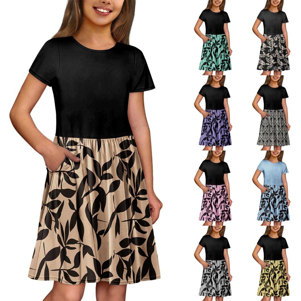 Girl Summer Dress Solid Color & Print Sleeveless Dress With Pocket Casual Dress Shorts Sleeve Party Dress