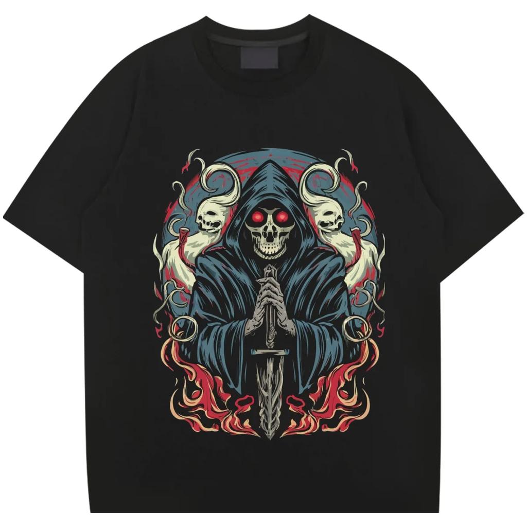 Death Round Collar Tee Oversized Loose Tops Retro Harajuku Rap Style Shirt Graphic Cotton T Shirt Causal Unisex T-shirt Custom