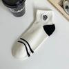 Women's Breathable Summer Cotton Ankle Socks - Black & White Boat Style, Sweat-Absorbent, Trendy Japanese Design, Ideal for College Sports.
