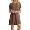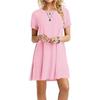 Fashion Womens Loose Simple Solid Color Print O Neck Short Sleeve Leaves Print Loose Streetwear A-line Dress