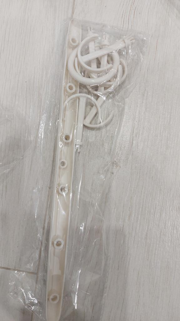 The hanger comes disassembled!! You need to insert all the hooks into the main part. Moreover, they don't go in easily, you have to press hard. At the same time, the plastic is of poor quality and breaks under such pressure. I managed to insert three hooks, the rest broke. I threw away the hanger, it's useless.