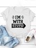 I'm with Stupid Letter Print Women T Shirt Short Sleeve O Neck Loose Women Tshirt Ladies Tee Shirt Tops Camisetas Mujer