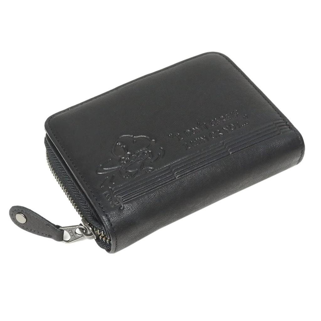 73281 Bifold Short Wallet Round Zipper Embossed Genuine Leather Black [Snoopy] Women's