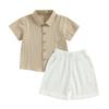 2Pcs Toddler Boys Summer Outfits, Short Sleeve Button Down Lapel Shirt + Shorts Set Baby Clothes