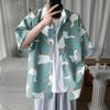 Men's Short Sleeved Shirt, Goose Pattern Shirt, Vintage Oil Painting, Summer Fashion, Casual, Loose, Square Neck, Multifunctional Top