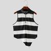 INCERUN Men Zip-up High Neck Sleeveless Striped Irregular Casual Crop Tank Tops