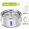 4L Cat Water Fountain Round Stainless Steel Automatic Drinking Fountain Double Outlet Cat Drinker Suitable for Two Pet Dog Cat