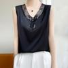 Summer Women's Silk Vest V-neck Mesh Splicing T-shirt Solid Colour Tops Sleeveless Vests