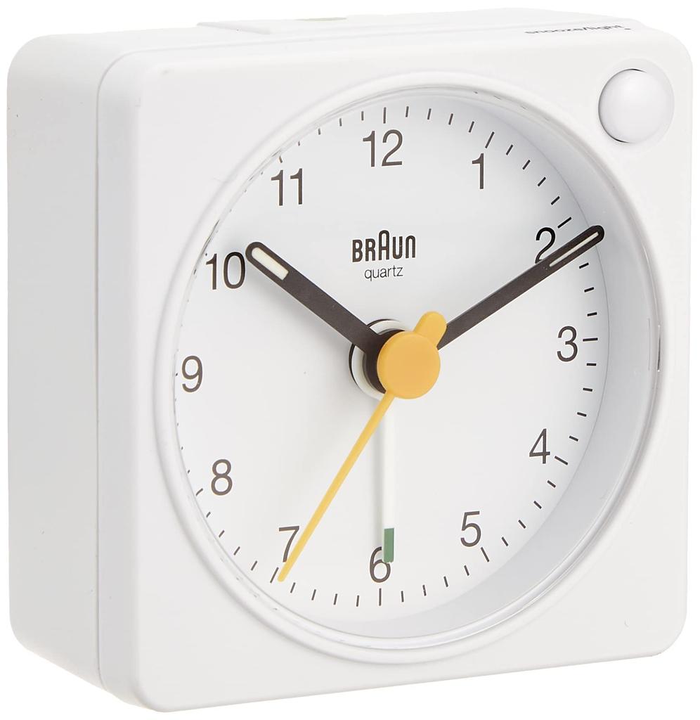 Table Clock Alarm Clock with Light BC02XW Classic Analog Alarm Clock Genuine Imported Product White Table Clock BRAUN/Brown