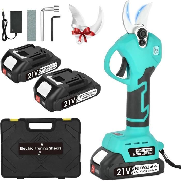 Sécateur électrique - nuzeky - professionnel 30 mm - 2 batteries 21v - lame en acier sk5 - écran lcd
