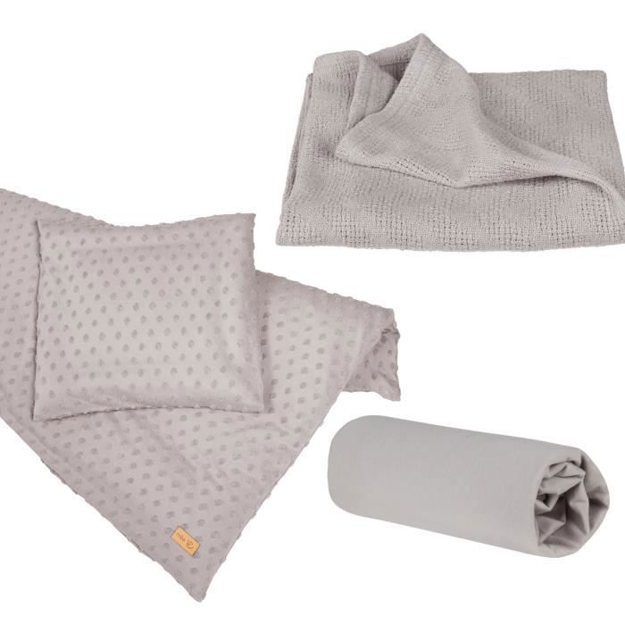 Roba coffret bébé bio "lil planet" - linge de lit + drap housse + couverture - gris argenté