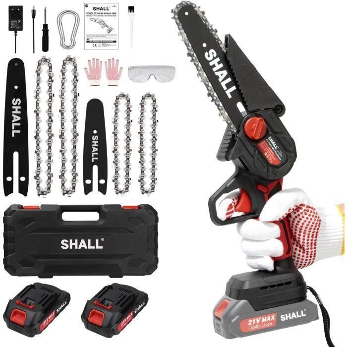Mini tronçonneuse portable shall tools 21v avec 2 batteries et 4 chaînes