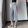 Cotton and Linen Plaid Pants Summer Thin Women's Clothing Bubble Eight or Nine Points Pants Casual High Waist Thin Loose Straight Pants