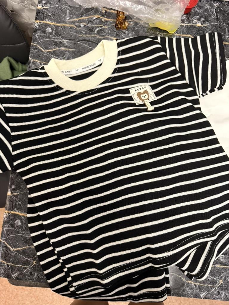 Summer Children's Short Sleeve Suit Black and White Striped Boys T-shirt Baby