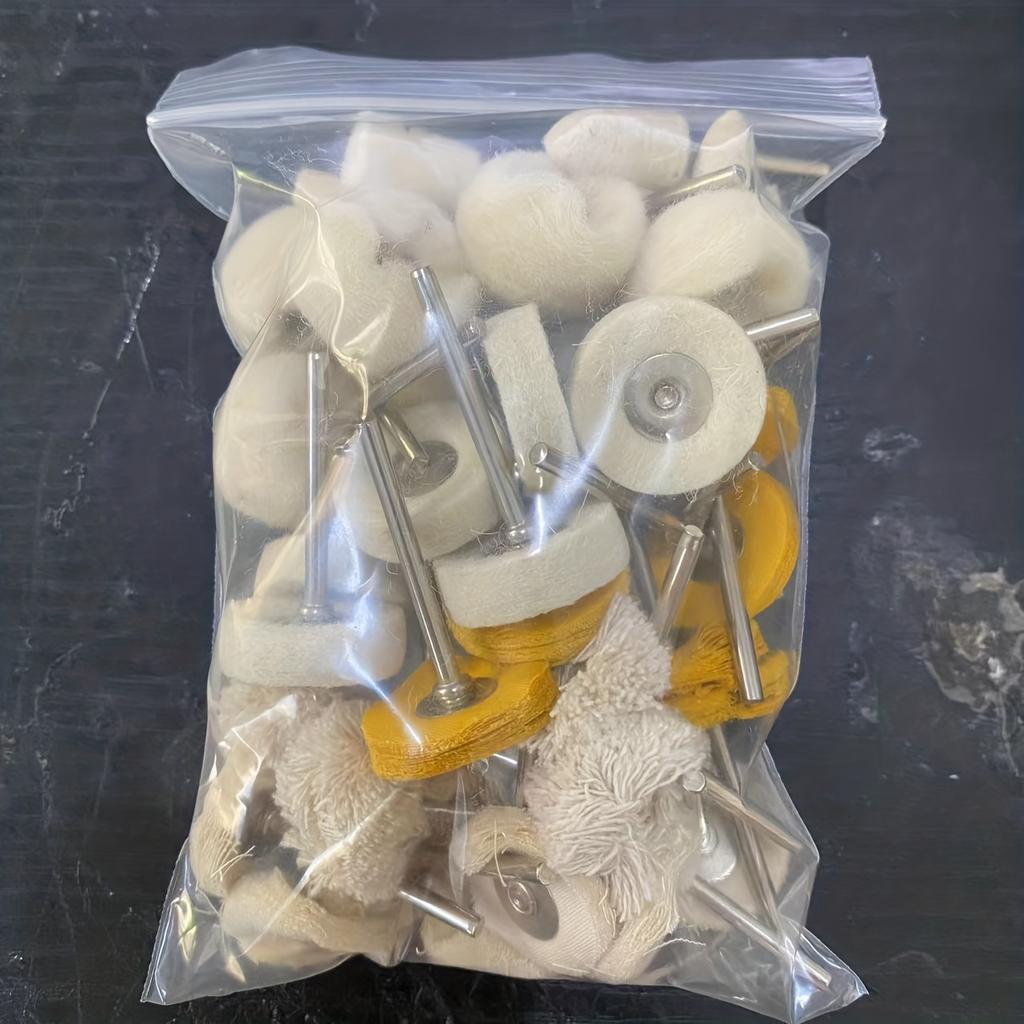 50pcs 1Inch Polishing Buffing Wheel Set, Wool Felt Mounted 3mm Shank For Rotary Tool Accessories, Mini Brush Polishing Kit For Watch And Jewelry