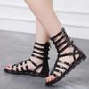 Fashion Back Zipper High Top Comfortable Summer Women's Sandals Peep Toed Narrow Band Hollow Out Roman Cool Boots Flat Shoe