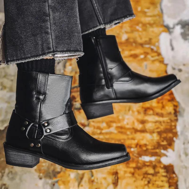 Knight Boots for Men Western Cowboy Boots Slip On Men's Leather Boots 2025 Wear-resistant Horseshoe Heel Social Shoes Male Botas