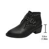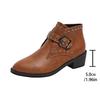 Retro Round Toe Leather Thick Heels Women Chelsea Boots Black Brown Modern Shoes Rivet Belt Buckle Ankle Boot Botas Mujer