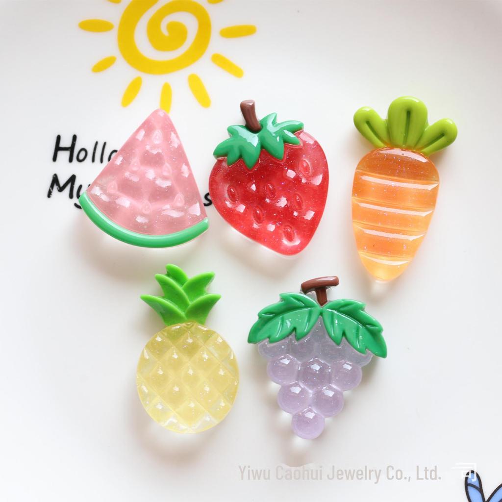 Transparent Glitter Fruit Resin Shoe Charms: Strawberry & Watermelon
