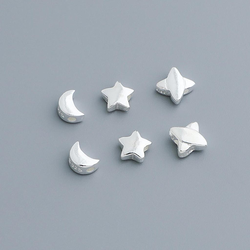 S925 Vegan Silver Geometric Stars & Moon Spacer Beads for DIY Bracelets