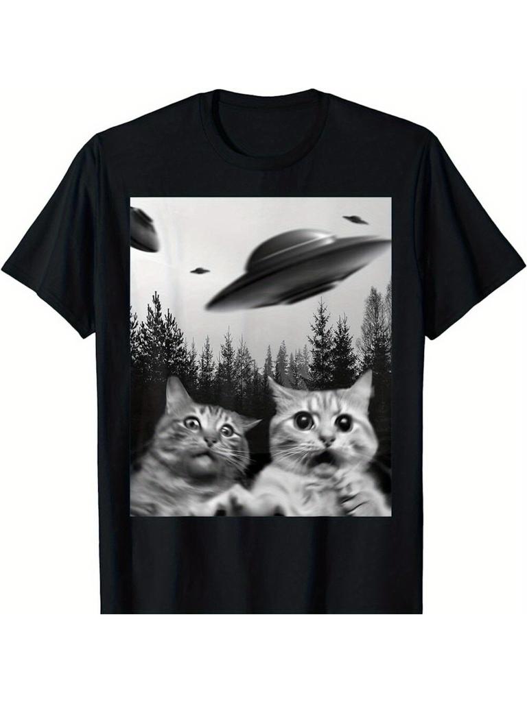 NEW BEST TO BUY Funny Duo Cats Selfie with UFOs Cat Lover Gift T-Shirt Unisex