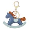 Children's Cartoon Rocking Horse Keychain - Handmade Wooden and Leather Pendant