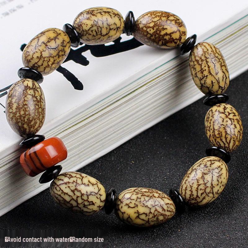Corn Bodhi Bracelet: Gold & Silver Thread with Bodhi Seed Beads, Unisex Buddhist Rosary Jewelry.
