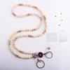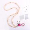 Unisex Stretchable Wooden Bead ID Necklace with Easy-Pull Key Chain