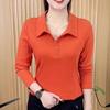 Experience style and comfort with this Women's Western Style Embroidered Lapel Long Sleeve Slimming T-shirt. Crafted from high-quality polyester material, this T-shirt offers a perfect blend of durability and softness. The elegant embroidery on the lapel adds a touch of sophistication, while the slimming design accentuates your silhouette. Designed for a flattering fit, this long sleeve top is ideal for versatile wear, making it a must-have addition to your wardrobe.