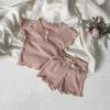 This stylish two-piece set is perfect for summer adventures. Crafted from soft polyester, it includes a short sleeve waffle-textured T-shirt and matching shorts. The breathable material ensures comfort and ease of movement, making it an ideal choice for warm weather activities. The set combines fashion and functionality, making it a versatile addition to any girl's wardrobe.