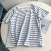 2025 Summer Women's Striped Cotton-Linen Short-Sleeve Round Neck Top, Korean Style