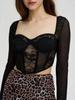 European & American Street Fashion Mesh Lace Slim Square Collar Long-Sleeved Top for Women