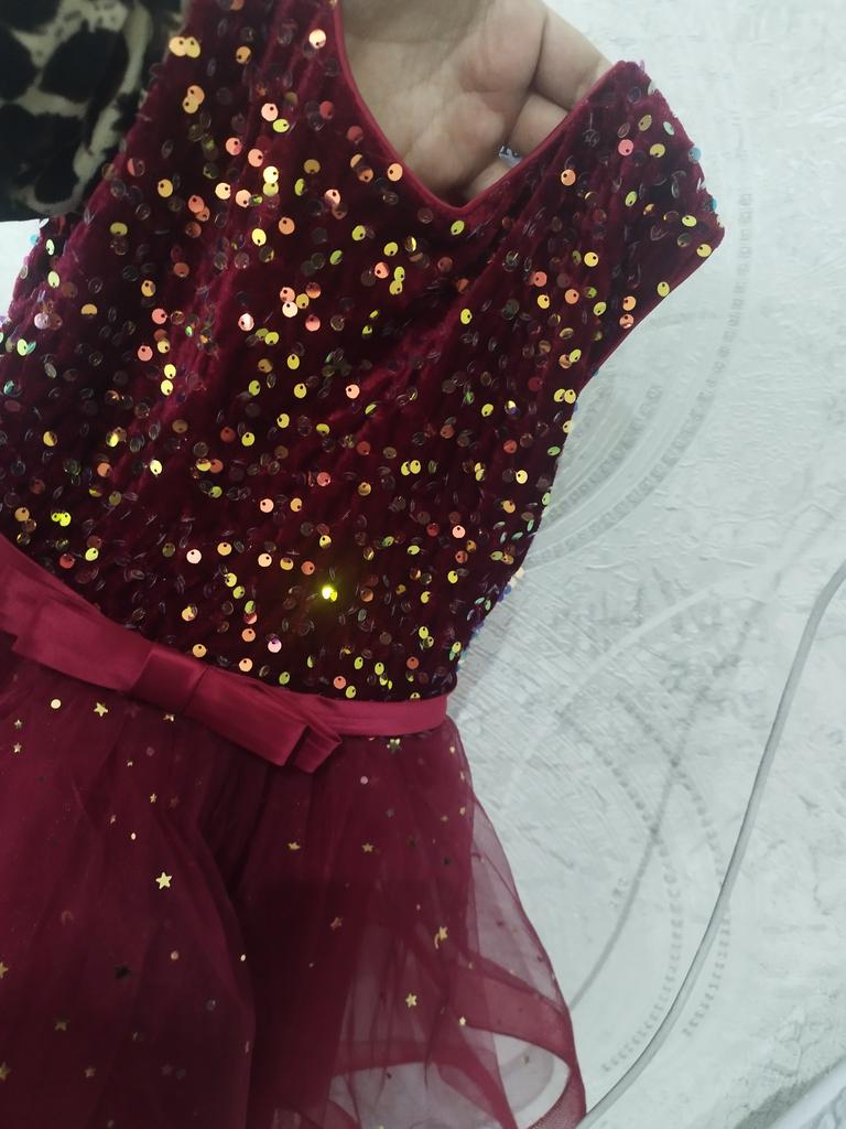 the dress is wonderful, the tailoring is neat, I hope the size fits, I took it as a gift. Our girl is thin, height 105, I think it will be just right, for the holidays - what you need.
