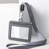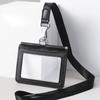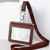 Double Sided Transparent PVC and Real Leather Work Card Holder with Lanyard Staff Hanging Neck Anti-interference Protection ID Badge Cards Cases
