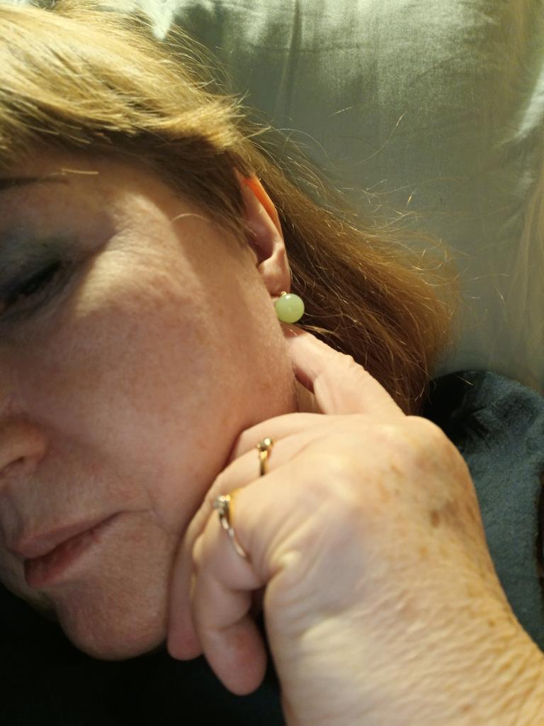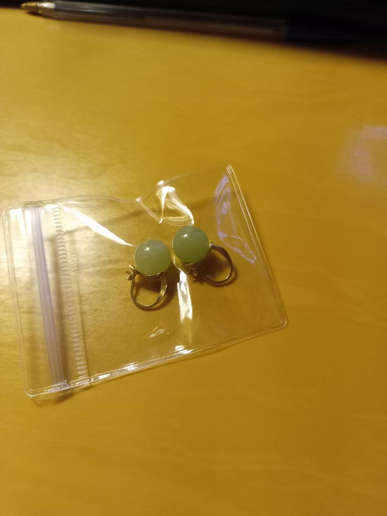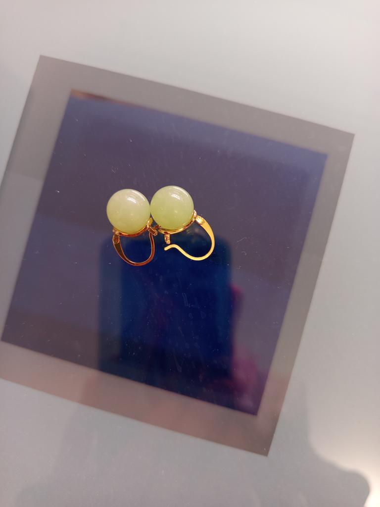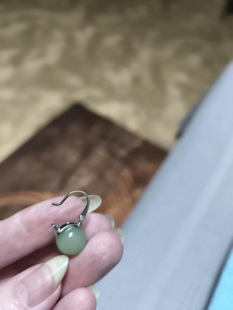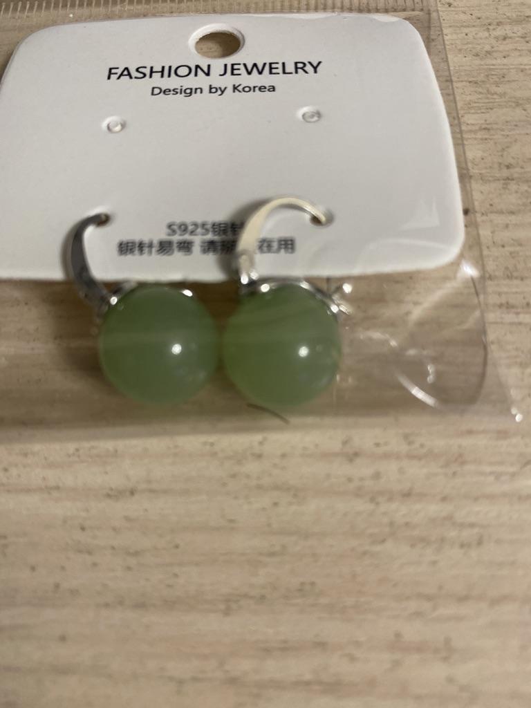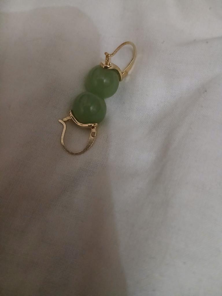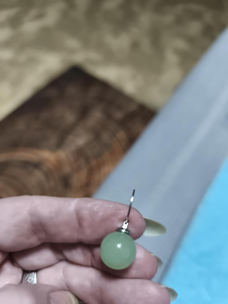 Neat little ones, they move on the ear when you turn your head. The only but... the jade ball is smooth - cabochon cut, and in the photo you can see facets, it looks more expensive, more natural..
