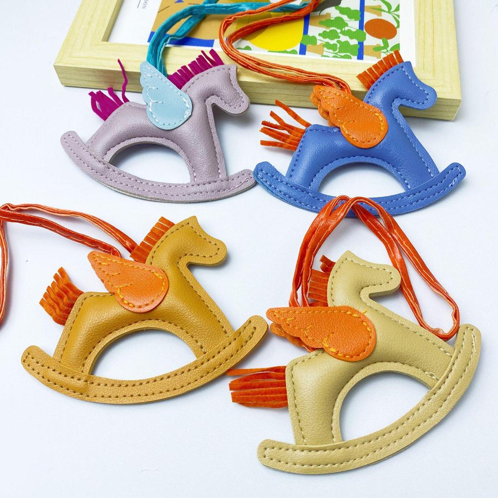 Colorful PU Leather Rocking Horse Keychain - Cute Bag Pendant Gift