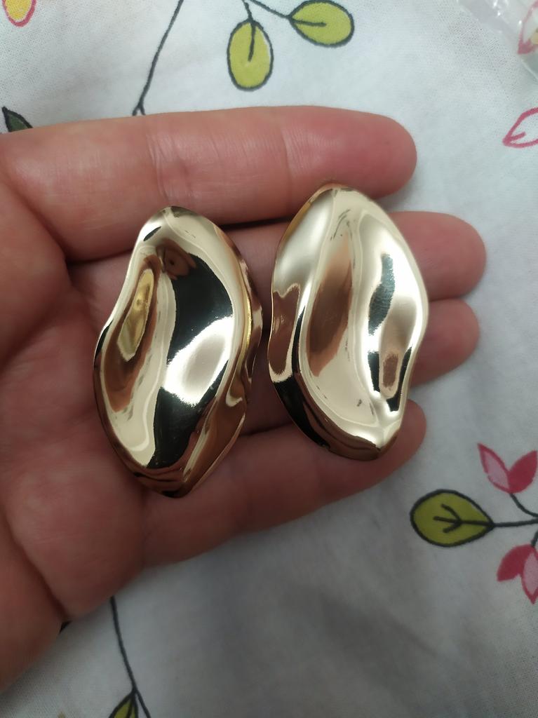 New Exaggerated Irregular Big Metal Smooth Wrinkles Drop Earrings Unique Design Gold Color Ear Jewelry