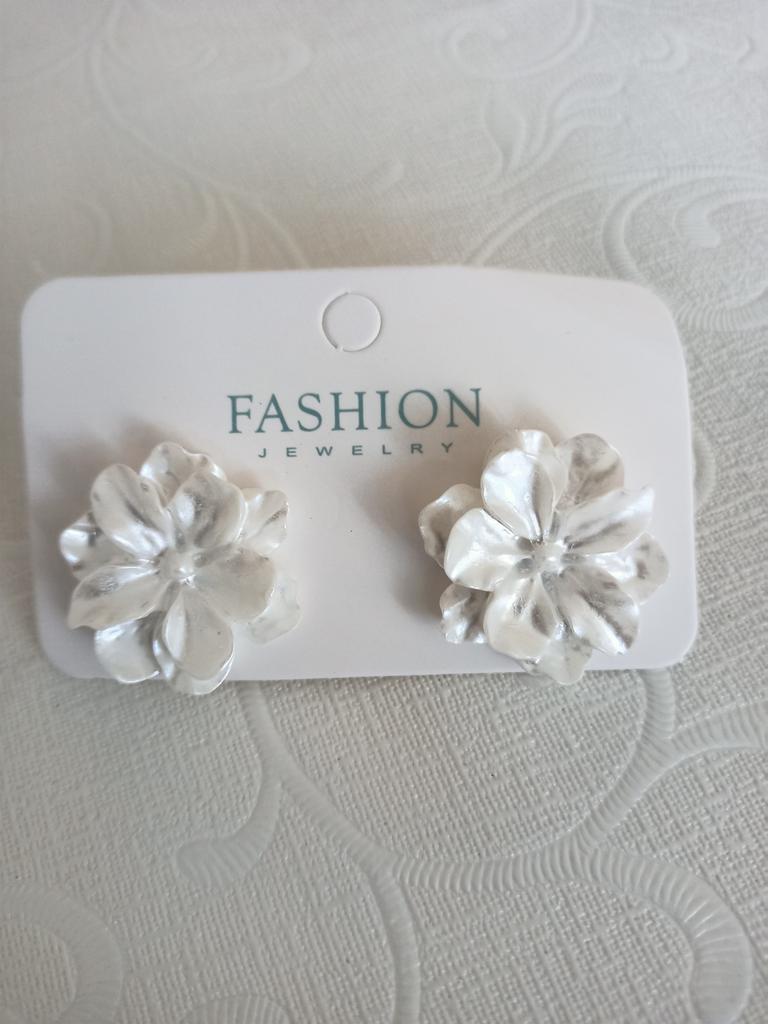 White Flower Stud Earrings for Women Folded Acrylic Side Charming Sweet Floral Girls Earrings Japanese Style Ear Jewelry