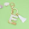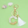 Trendy White Tassel Letter Keychain with Crystal Pendant