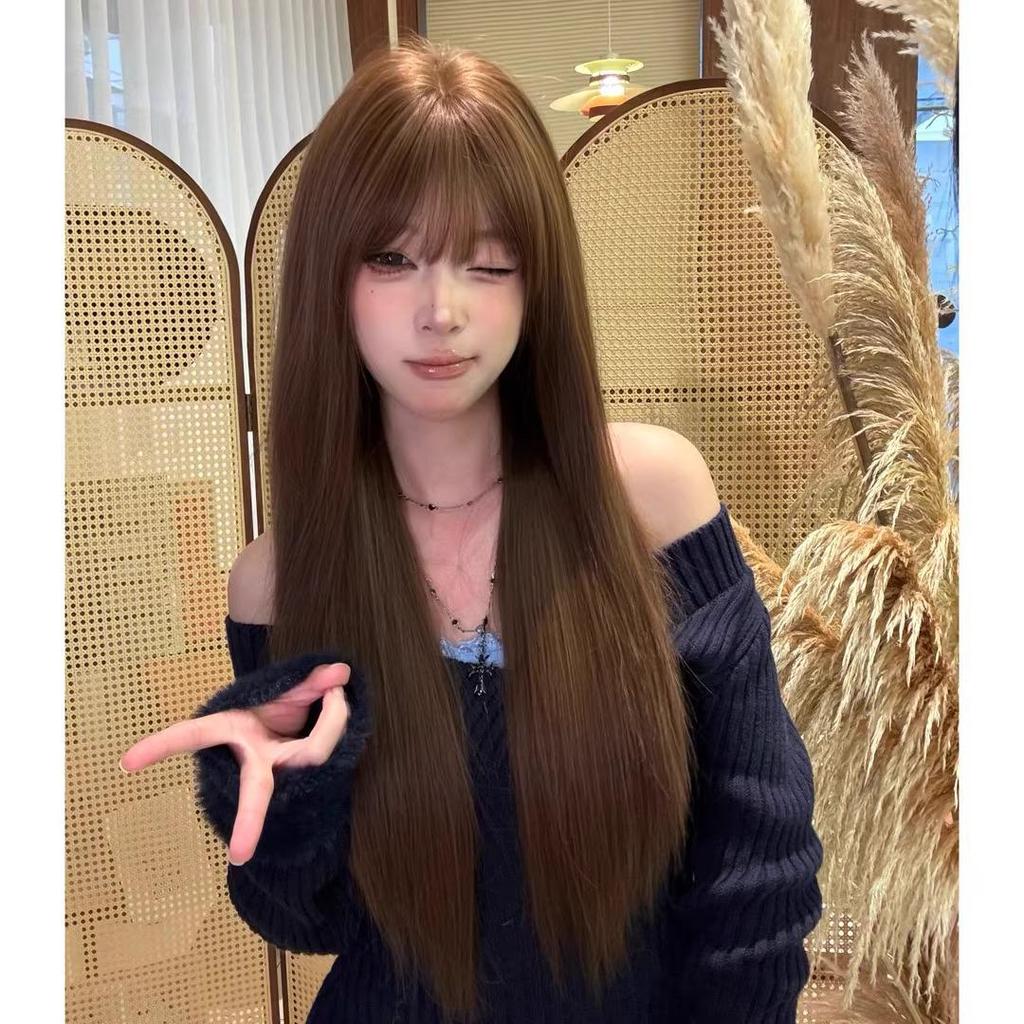 Gu Zao Baby Warm Chestnut Brown Long Straight Bangs Wig - Realistic & Fluffy