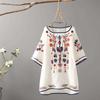 Women's Plus Size T-Shirt Vintage Embroidery Short Sleeve Cotton Linen Blouse Women's Loose Ethnic Style Top