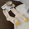 Retro Double Needle Contrast Color Mid-Tube Socks - Maillard Series
