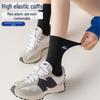Trendy Women's Mid-Tube Embroidered White Cotton Socks - Black Sporty Spring & Autumn Sweat-Absorbent Unisex Design