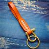 Braided Vegetable-Tanned Cowhide Keychain with Brass and Copper Horseshoe Buckle