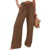 Women's Wide Leg Pants Elastic High Waist Drawstring Pants Flowy Summer Beach Palazzo Pants Casual Trousers