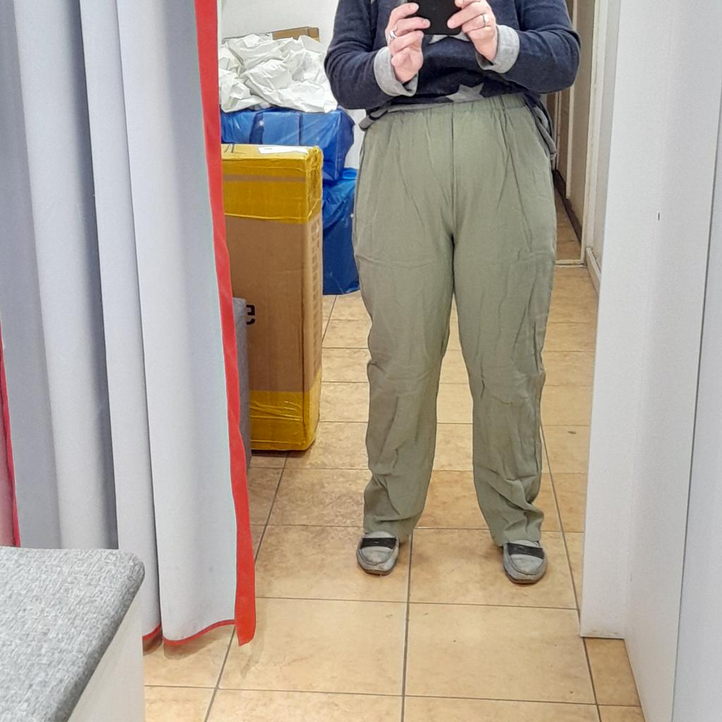 The trousers match the description in hip volume, but the leg is Very narrow, like tights((( the fabric is thin and see-through, it's a complete joke!