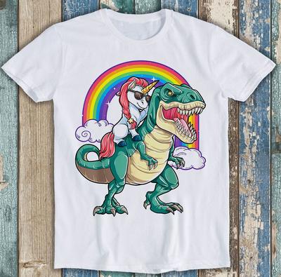 Unicorn Riding T Rex Shirt Dinosaur Boys Girls Kids Gift Unisex T-Shirt Special Unisex T Shirts Summer Tees Cotton Design