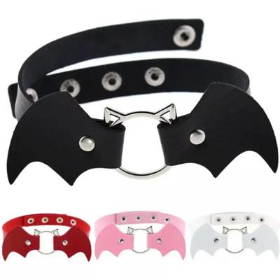 Vintage Punk Gothic Harajuku Cosplay Black White PU Leather Bat Choker Necklace for Women Men Statement Necklaces Jewelry