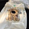 Women's Autumn Casual Furry Puppy Embroidered Pullover Hoodie - Loose Fit, Long Sleeve, Couple's Style